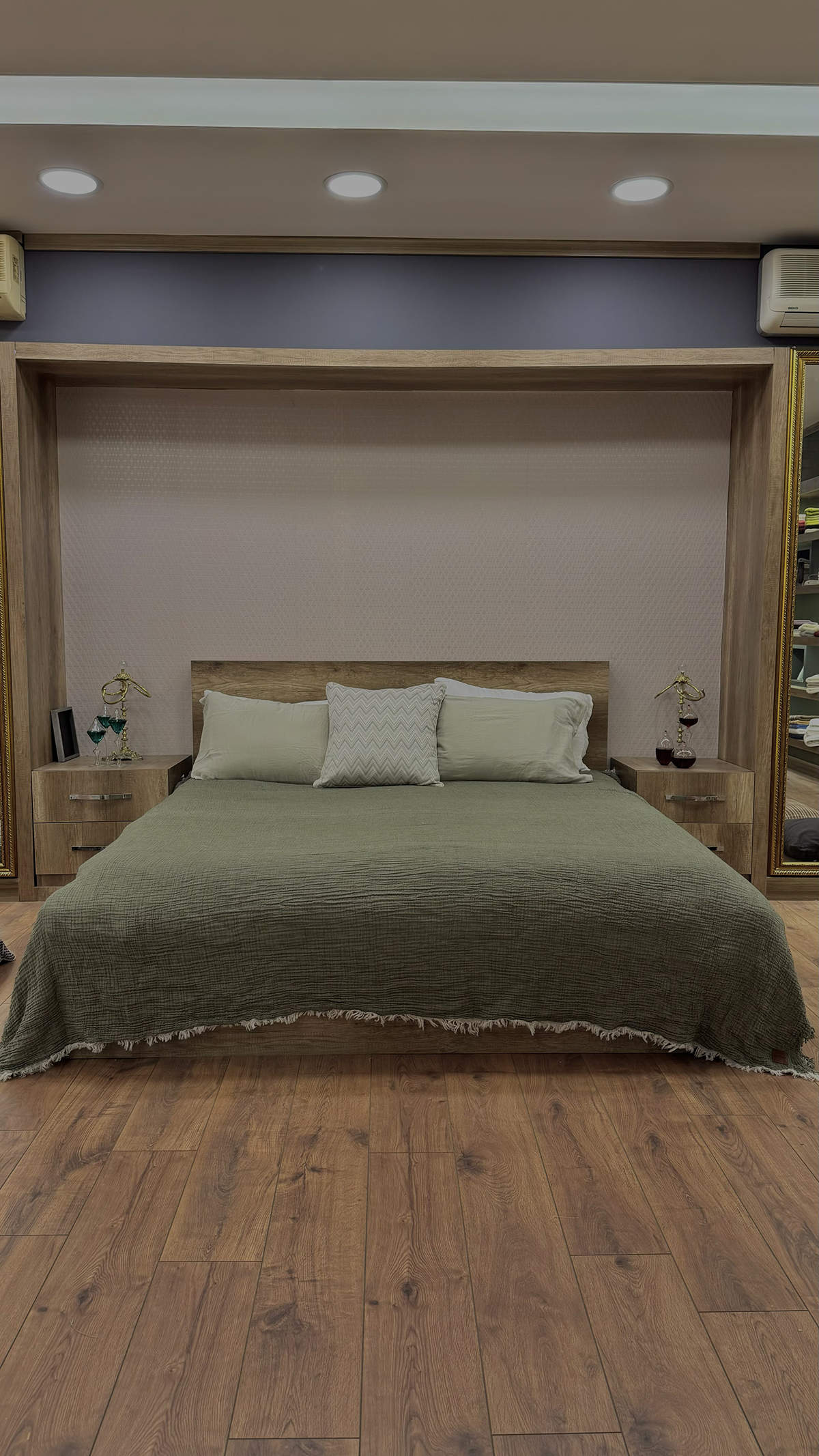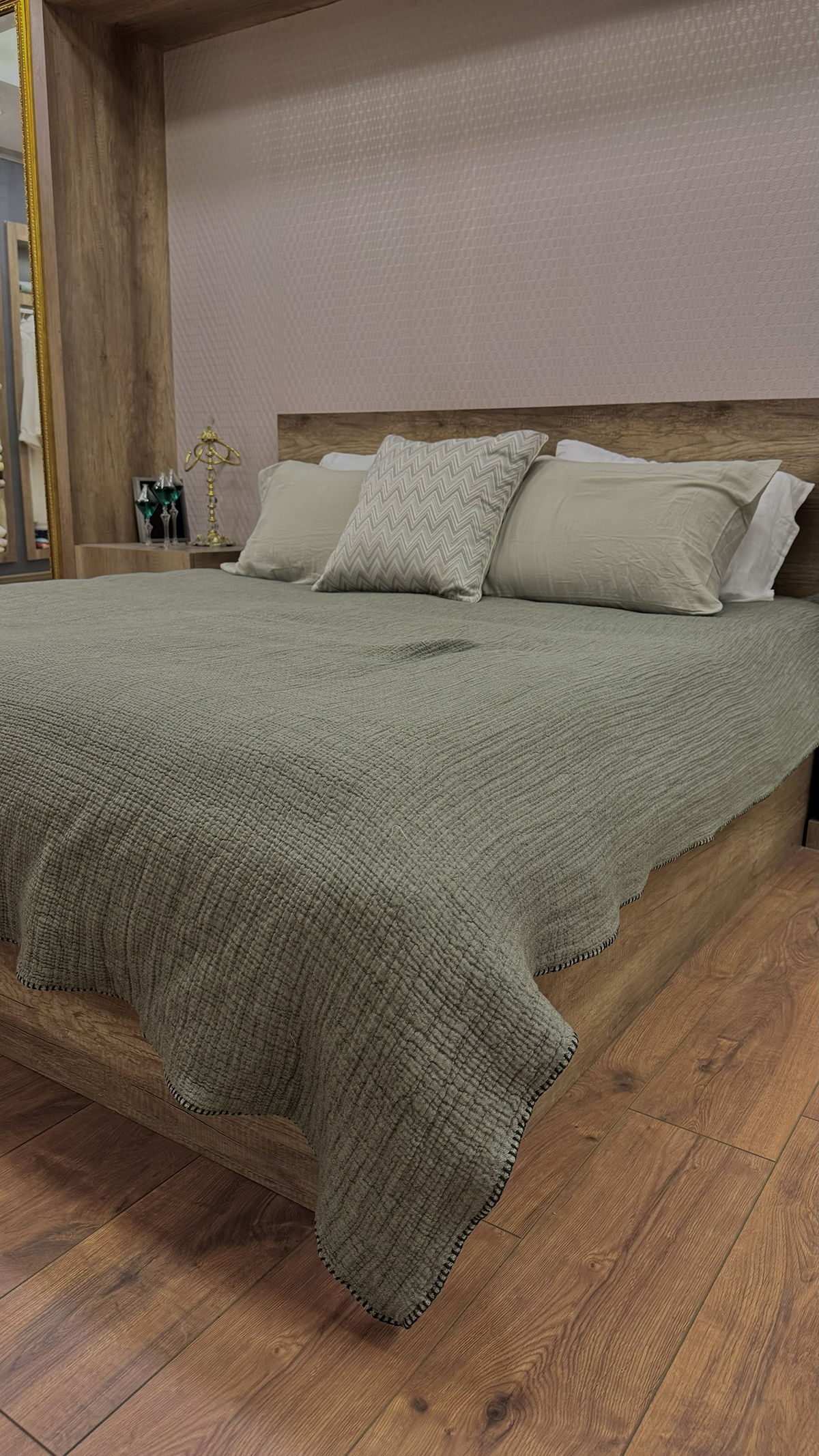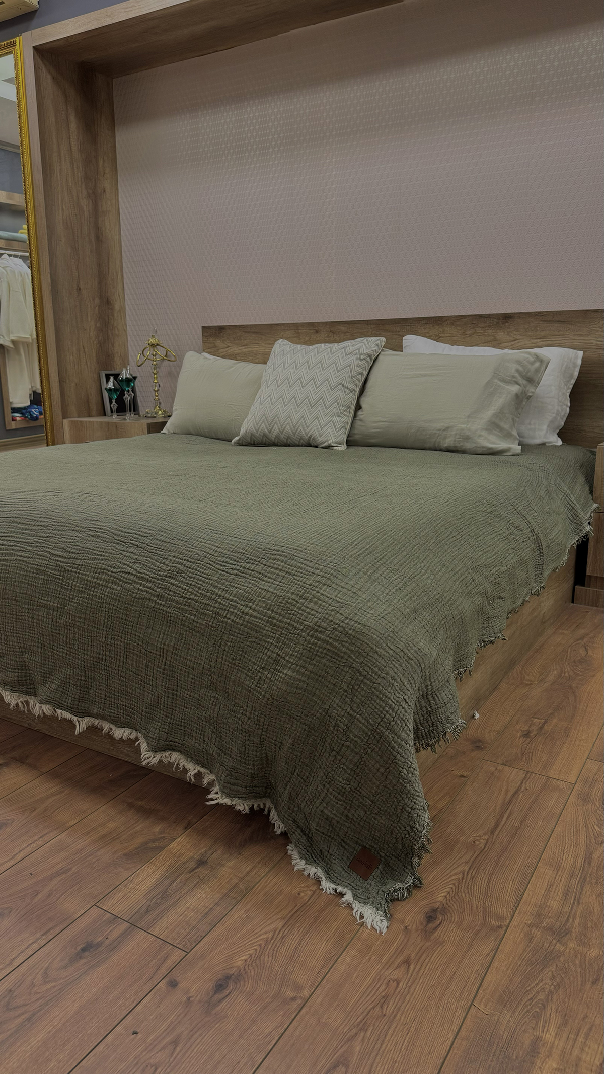 Nero Müslin Çift Kişilik Yatak Örtüsü Haki