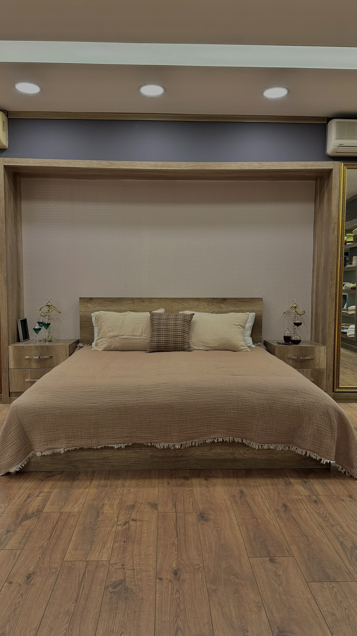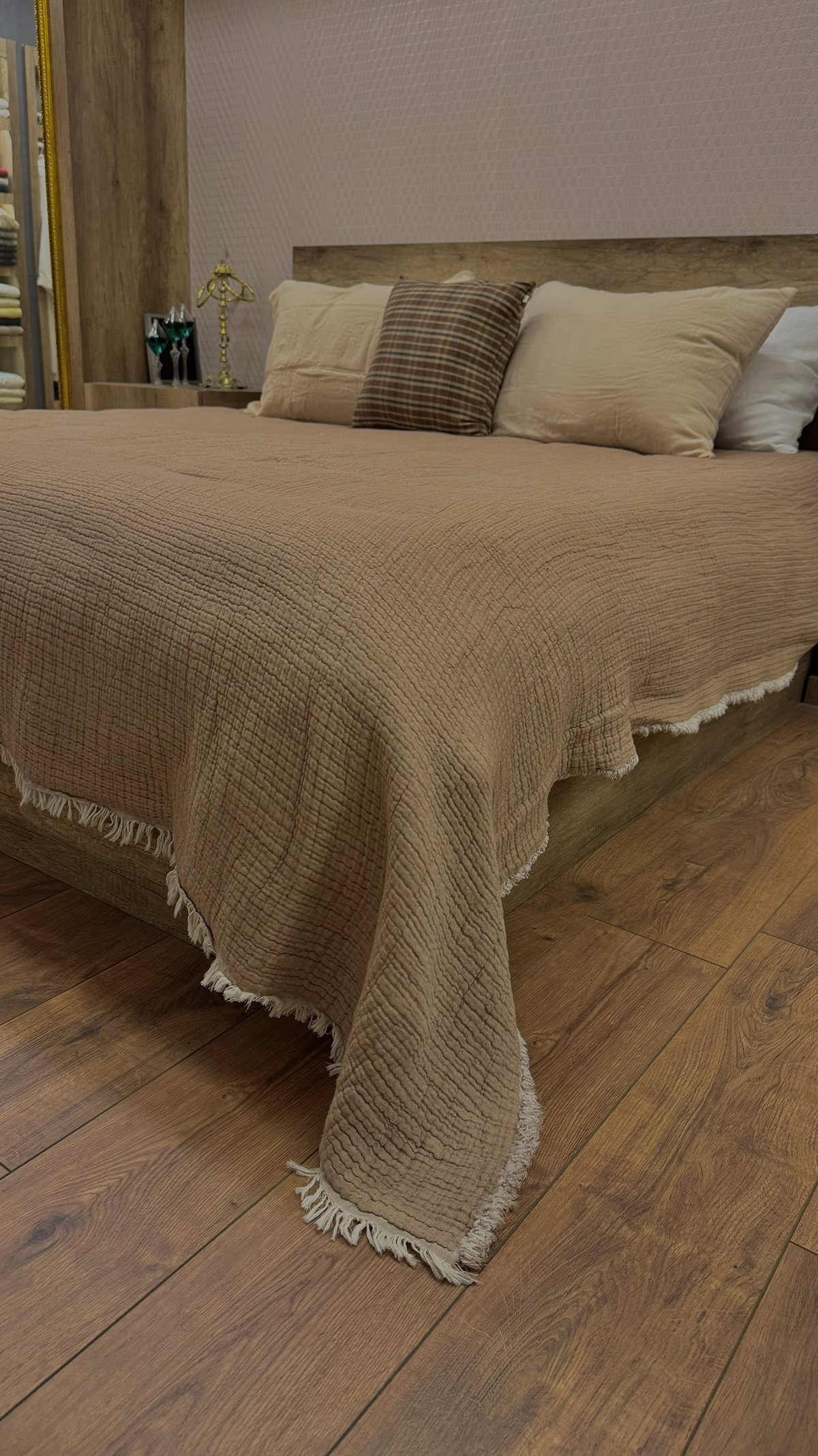 Viola Müslin Çift Kişilik Çapraz Koyu Bej