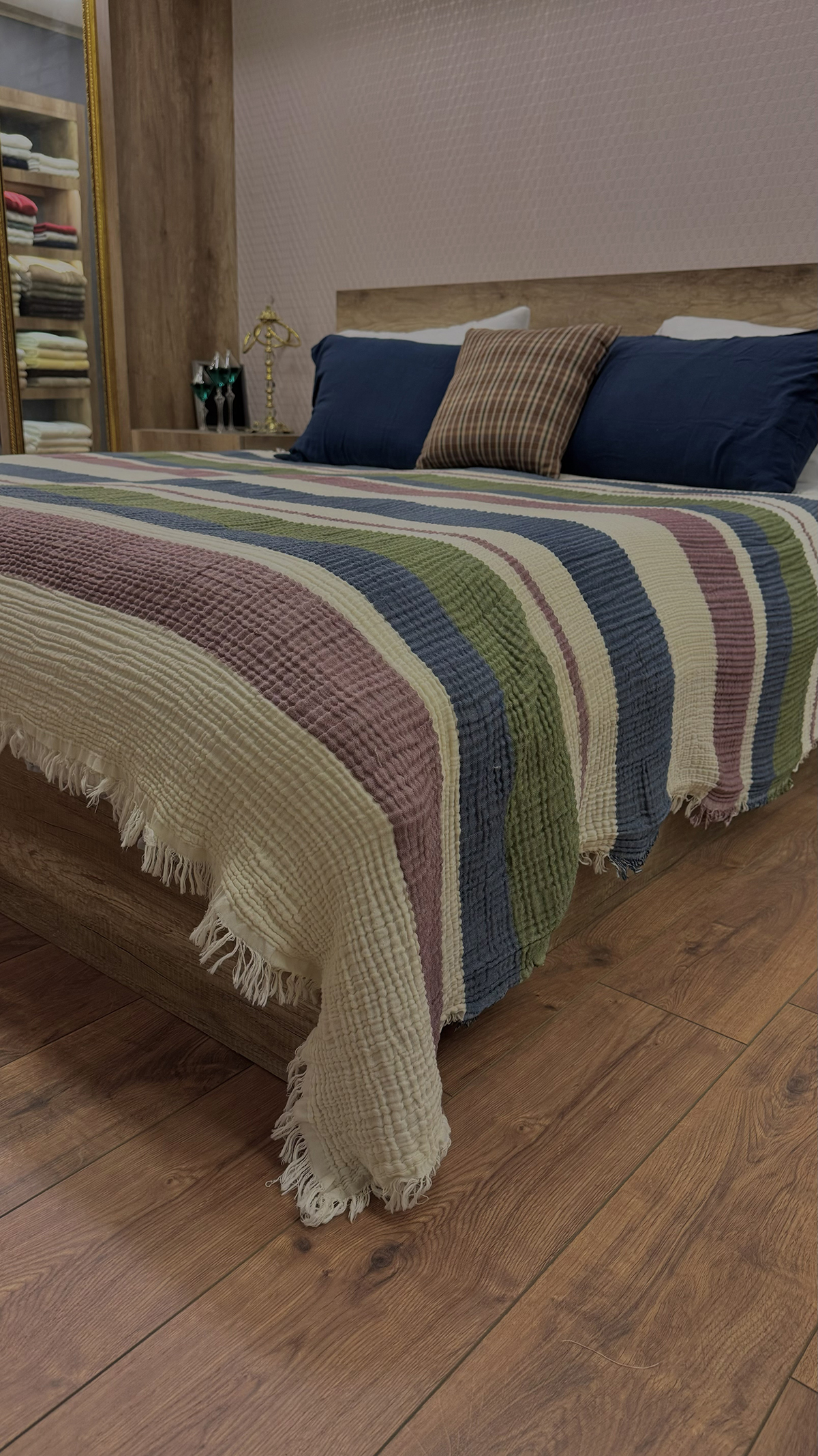 Rosso Müslin Çift Kişilik Çizgili Yorgan