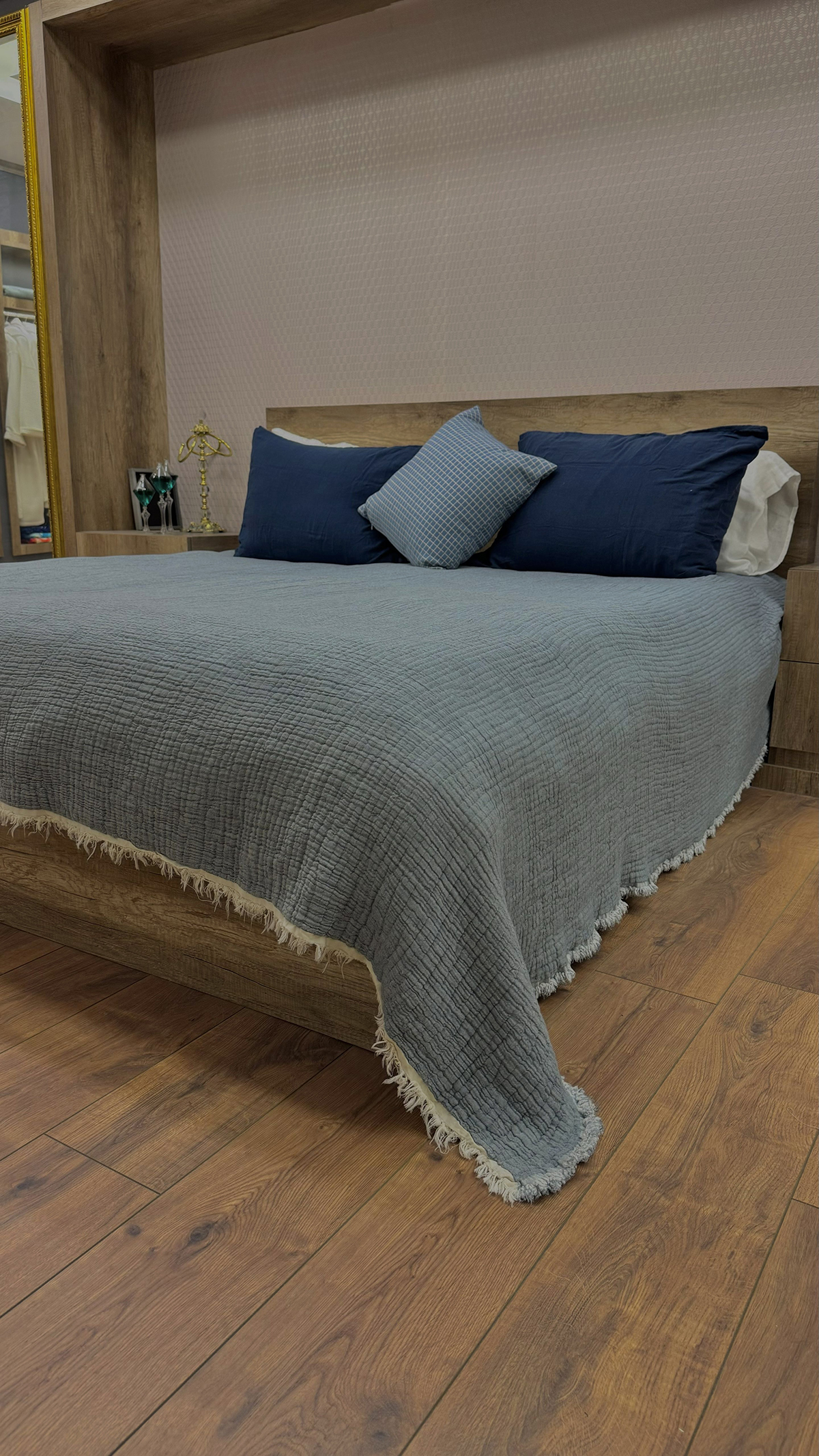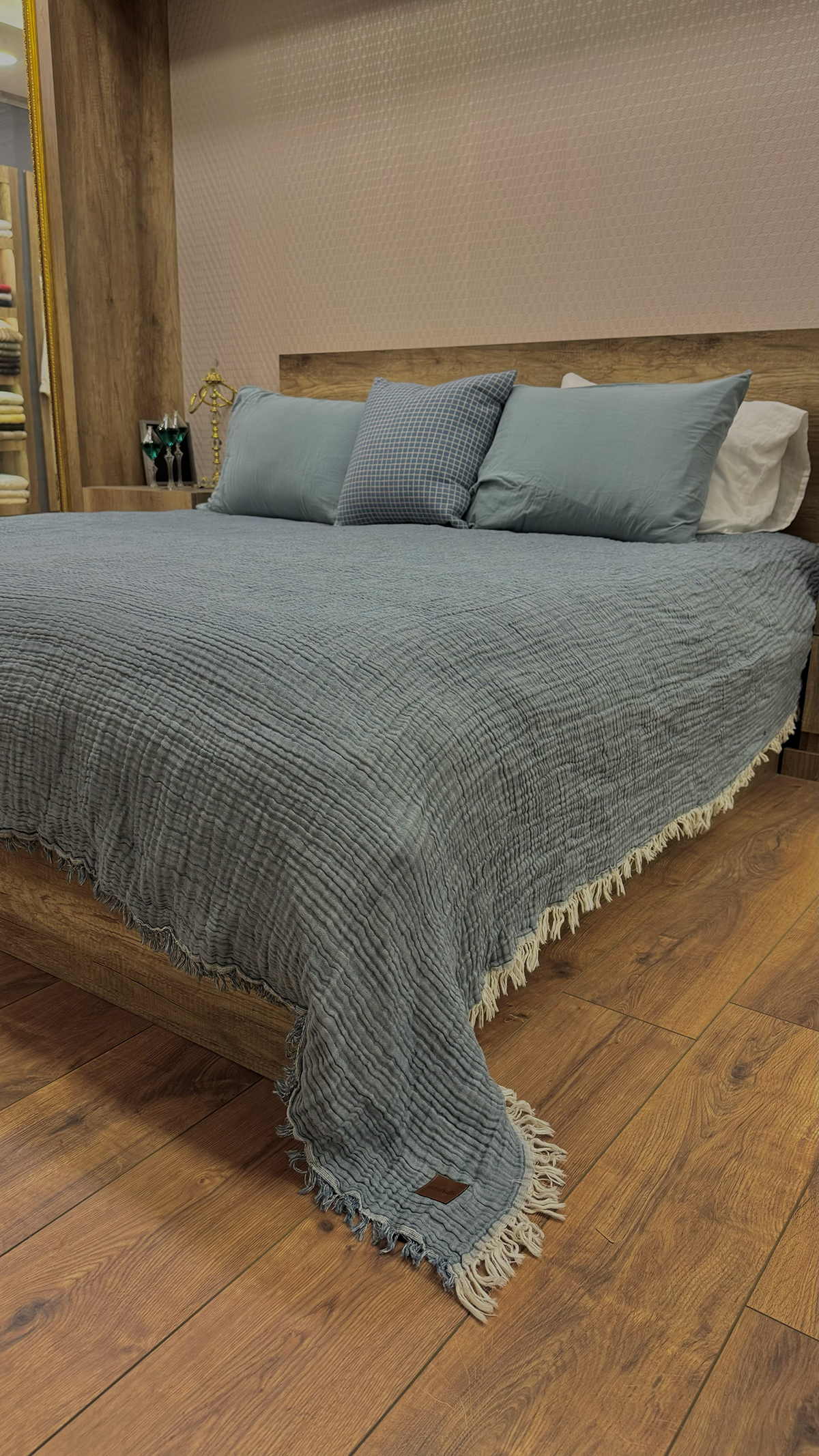 Nero Müslin Çift Kişilik Yatak Örtüsü Mavi