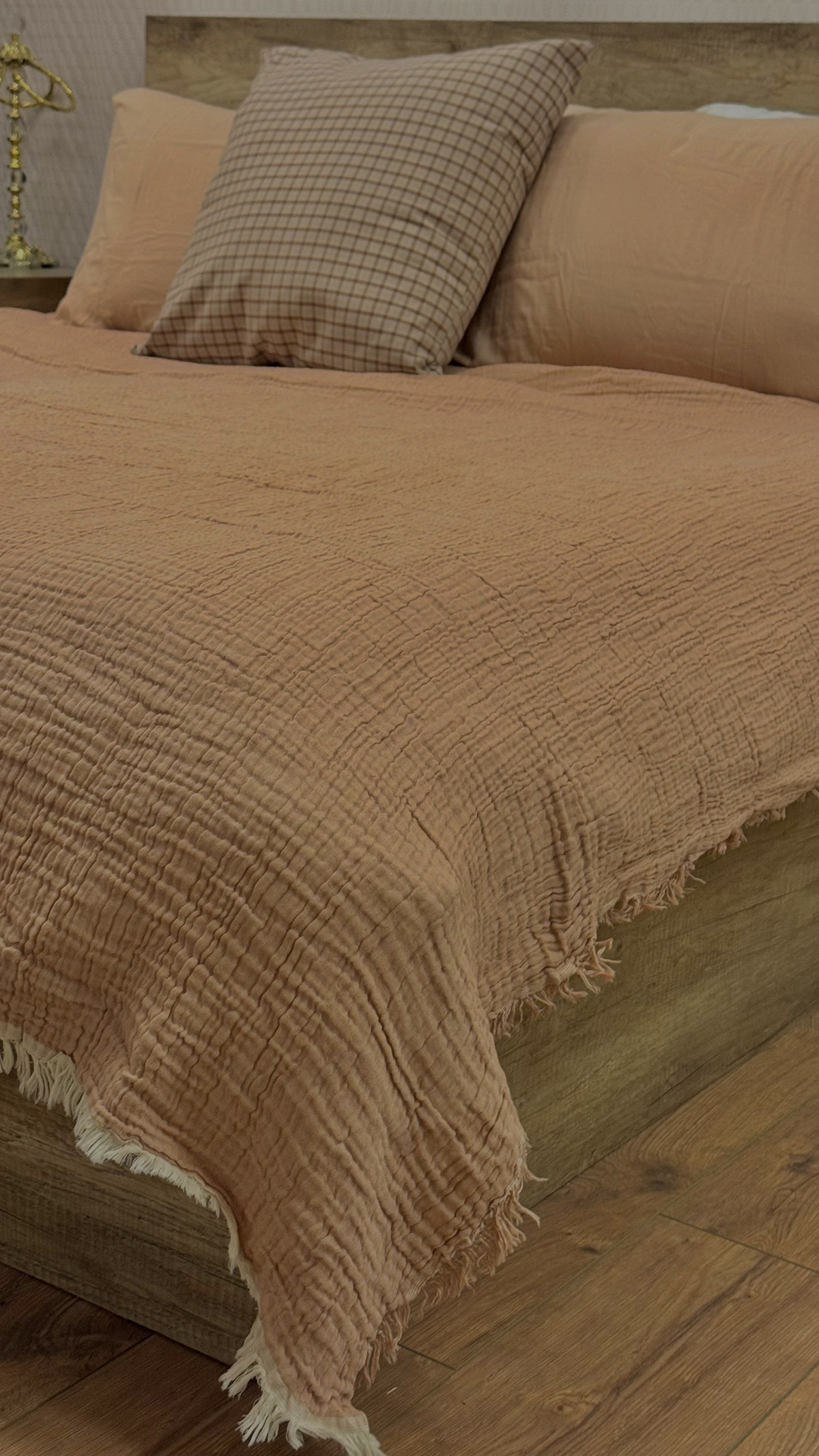 Nero Müslin Çift Kişilik Yatak Örtüsü Somon