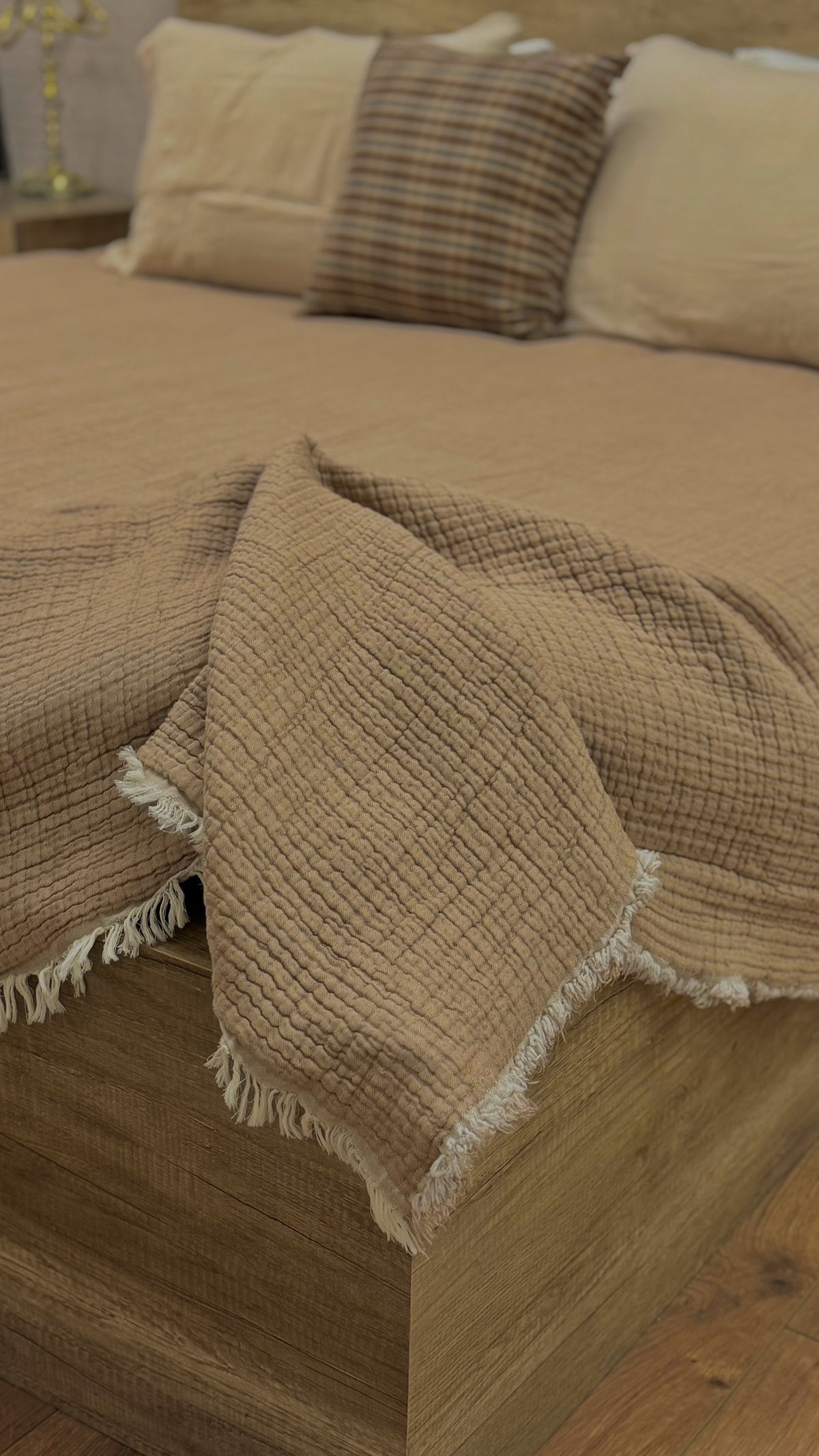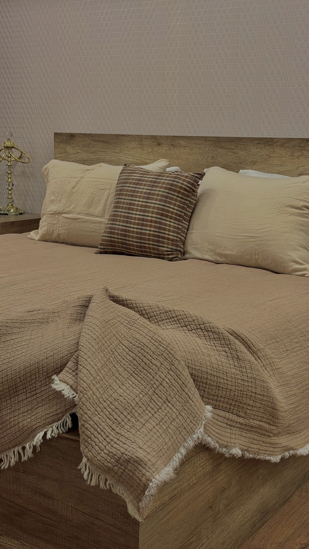 Viola Müslin Çift Kişilik Çapraz Koyu Bej