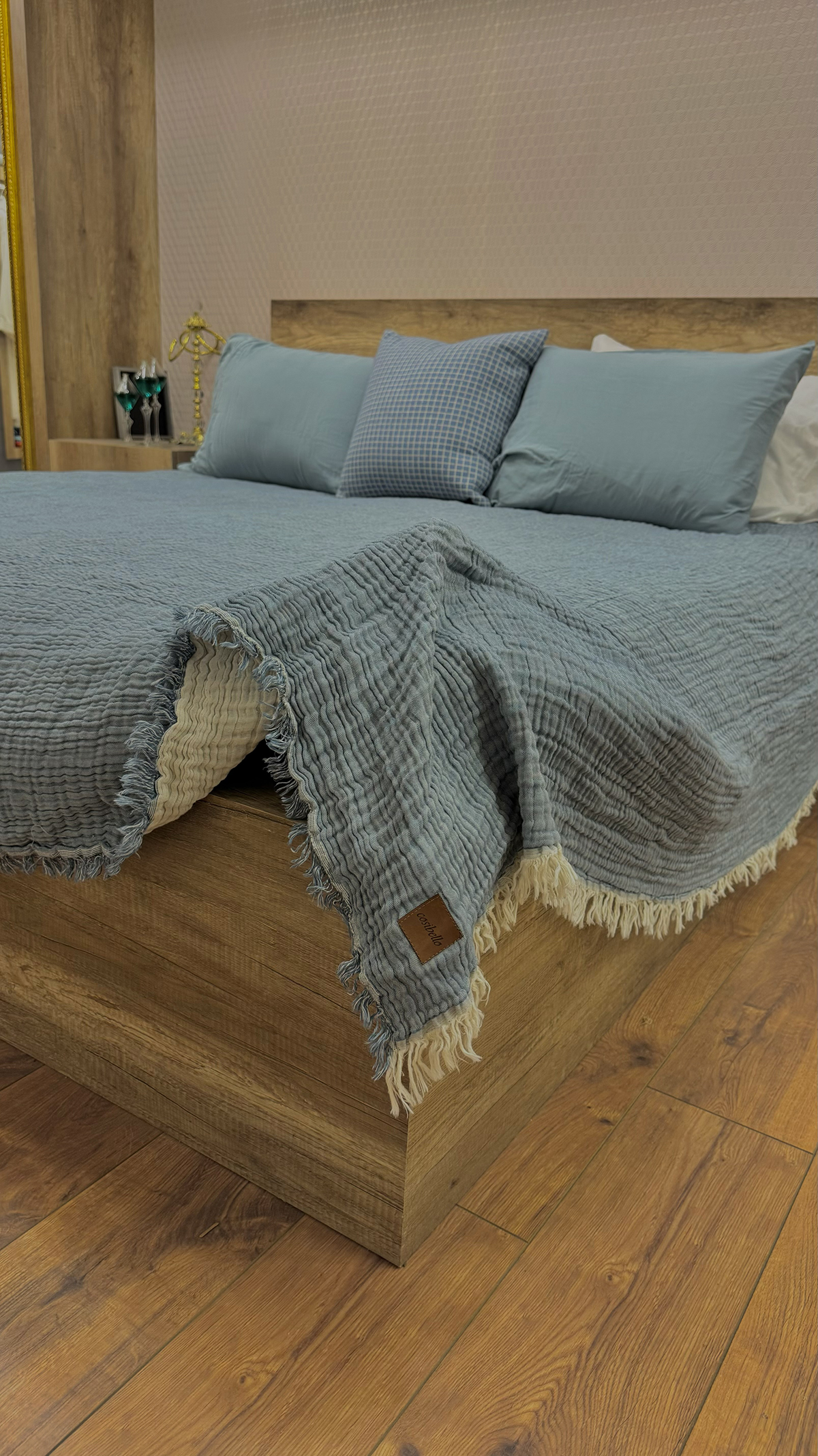 Nero Müslin Çift Kişilik Yatak Örtüsü Mavi